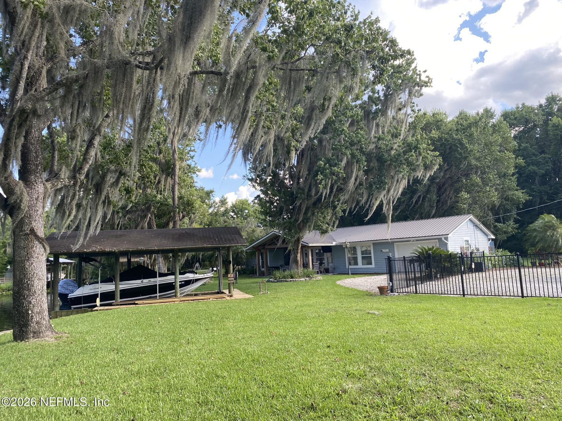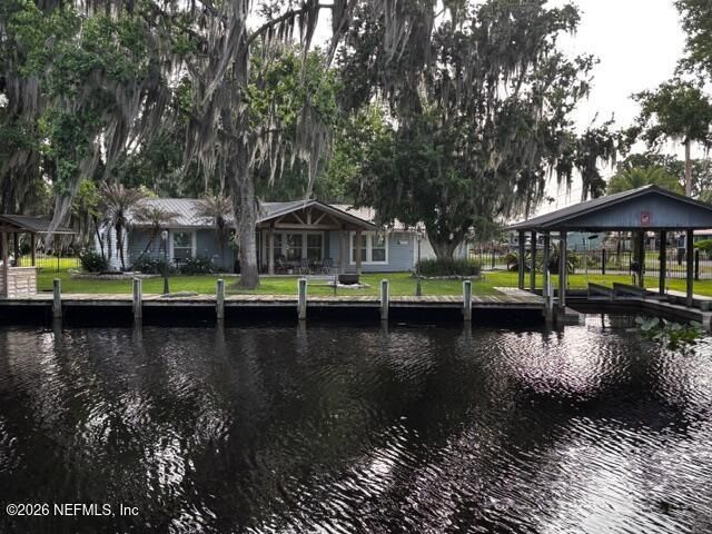 Stunning Waterfront Paradise 3/2 with garage 237 ft waterfront ,with concrete bulkhead,built in boat house /w lift & docking for large vessels,Included in sale is adjacent,seperate cleared and lanscaped lot.Home features split floor plan,open concept,tile flooring thru out,gorgeous chefs kitchen new custom cabintry,soft close drawers,stainless appliances ,oyster shell solid surface counter top with scallop edging, custom wood breakfast bar, wine rack, eat in Kitchen area, tongue & grove ceilings, recessed lighting & custom fixtures, reverse osmosis, updated bathrooms, Wood burning fireplace in living room,custom built ins, large covered cedar front porch.Central heated & cooled garage,metal roofing,gutters,double pane windows.Property offers very quiet and tranquil waterfront park like setting ,dead end street,aluminum fencing, landscaping, lighting,irrigation system,covered fish cleaning station,circular driveway, fire pit,plenty off room to build out on the Two properties if desired Conveniently located close to Palatka, St Augustine, Beaches,Shoping, I95, Palm Coast and Jacksonville markets. A Must See Property!